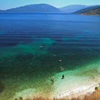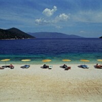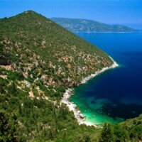 Antisamos Beach: Another of Kefalonias more famous beaches made even more famous when some of the filming for Captain Corelli’s Mandolin took place here. A pebble beach excellent for snorkeling, with crystal clear blue/green water and backed by an abundance of lush green trees.